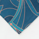 Repeating geometric Art Deco pattern with teal lines and orange dots on a dark blue background, creating a symmetrical and elegant design.