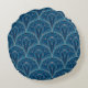 Repeating geometric Art Deco pattern with teal lines and orange dots on a dark blue background, creating a symmetrical and elegant design.