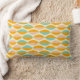 Repeating geometric pattern with overlapping leaf shapes in orange, teal, and pink on a beige background. The design conveys a retro, vibrant feel.