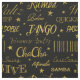Detta upprepade mönster, i ett guld faux-glitter stil, är namn på många av de stora stilarna för ballongdans, i typografiskt typsnitt som anspelar på just dansens stil. Interspersoner mellan ord är olika stora stjärnor som accentuerar utformningen. Danserna är waltz, tango, foxtrot, cha cha, rumba, jive, öster kusten swing, snabbsteg, samba, paso doble, Viennese waltz, mambo och bolero. Den här bilden är designad med en genomskinlig bakgrund som gör att du enkelt kan ändra bakgrunden till färg - du väljer helt enkelt "Anpassa den!" och väljer sedan önskad bakgrund färg i Färgen "Utskriven bakgrund".