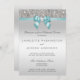 Eleganten för silverbröllop för personlig beställnings- inbjudningar för repetition middag med ett utskrivavet härligt glittery silver avbildar sequinsjuvlar, gems, glittermönster, gulliga sofistikerade skins utskrivavna krickablått/turkospilbågar och rosett band och nätt digitala diamanter som bling juvlar och mörkgrå färgtext på en silverlutningbakgrund. BEHAGA NOTERAR: Dessa är lägenheten utskrivavna diagram - inga verkliga sequins, pilbågar eller lyftta delar. Text, stilsorten och färg av text kan alla skräddarsy. Om du behöver hjälp som skräddarsy din produkt, behaga kontaktar mig till och med mitt lager. Jag ska är lycklig att hjälpa. Jag har att matcha produkter för bröllop i mitt lager.