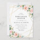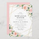 En underbar modern design med en elegant faux guld-geometrisk ram-omringningstext och vackra blommor med vattenfärg i rosa. Ett tema för perfekt för vår och sommaren bröllop. Svarstexten och färg på den här mallen för inbjudan till repetitionsmiddag kan vara personlig.