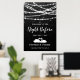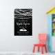 Repetitionsmiddags välkommen till kvällen före skylt - denna design har strängar av lampor och stjärnor på en svart texturerad bakgrund. Och längst ner - Två svanar som formar en hjärtform.