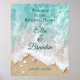 Denna välkomstskylt till vår repetitionsmiddag är inspirerad av stranden och accentuerad med turkosa havsvågor, sand, sjöstjärnor, sanddollrar och sniglar, vilket gör den perfekt för strand-, tropik- eller destinationbröllop. Den är en del av kollektionen Turquoise Waves Wedding.
