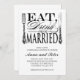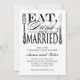 Ät, drick och var gift! Uppmaning på nybörjare med elegant silvergods och kalligrafi-skript. Besök ONImage Vintage Design om du vill ha ett urval av snyggtar för designade inbjudningar till anpassningsbar, bröllop-porto och kontorsmaterial med en vintage och modern blandning. ©2010 ONImage Vintage Design. Alla Höger reserverade.