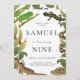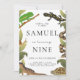 Ringer upp all reptil älskare! Den här roligten är fortfarande en modern inbjudan till reptilfödelsedagar underbar för pojkar och flickor. Grönten och det bruna färg kostym en födelsedagsfest vid djurparken, djurparken eller bara för någon liten unge som kärlek reptiles. Med en chameleon, gecko, orm, snigel, komodo drake och sköldpadda med grönt och löv kommer inbjudan att stå ut med verkligen.