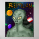 Extra markbunden konst med en reptiliansk utlänning med en bakgrund av stjärnor och planeter.