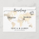 På resan till giftermål kan du spara ett vykort som innehåller en världskarta och text från guld, "Resande från Engaged till Married". Den här reseinspirerade designen är perfekten för att dela ditt bröllop-datum med familj och vänner. Anpassa den med händelseinformation så att gästerna markerar sina kalendrar. En snyggt och ett bekvämt sätt att ange tonen för din speciella dag.