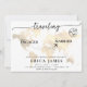 Fira äventyr i äktenskapliga blickar med inbjudningskort för möhippan med en världskarta och text från guld, "Att resa från Engaged till Married". Den här reseinspirerade designen är en perfekt för att hedra bruden när hon förbereder sig för sin färd längs Aisle. Anpassa den med händelseinformation för att skapa ett unikt inbjudan. Perfekt för vänner och familj att fira den blivande bruden.