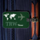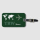 frontalsida: ett grönt flygplan med resenärens namn-initialer och tillbaka mellan karta och världen: ytterligare information