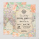 Resa Peach Blommigt Inbjudningskort för möhippan. Världskarta. Kärlek är en resa. Vattenfärgade botaniska persikoblommor (Peach Ivory Blommigt Flowers). Möhippa.