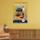 Vintage resor poster för Sunset-sträckan med järnväg och sjövägen till New York Södra Stilla havet Linjer, omkring 1930, Poster att människor på den sovjetiska Begränsada tåg som omges av människor i mexikanska kläder på marken. omkring 1930