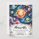Fira din lilla första resa runt sol med den här magiska vattenfärgen galaxi-matade födelsedagsinbjudan! Den här rymdinspirerade designen har vibrerande planeter, stjärnor och ett strålande sol är perfekt för en första födelsedagsfest. Anpassade med ditt barns namn, information om party och OSA, det är perfekt för pojkar eller något rymdälskande barn. Lägg till en kosmisk beröring till firande med den här öga-fångande och minnesvärda inbjudan!