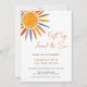 Planerar du en flickas första födelsedagsfest? Denna söta inbjudan är dekorerad med en färgad vattenfärg sol och säger "Första Resa runt Sol" i snyggt typografi. Det finns en sol mönster på baksidan. Enkelt anpassade. Ursprunglig vattenfärg © Michele Davies.