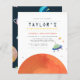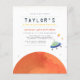 En rymdtemat inbjudan för din lilla en födelsedag! Denna design har färgglad rymdskeppstypografi. Överst på kortet finns falskt guldglitter och längst ner en stor orange sol, en UFO och några stjärnor. Baksidan av korten visar en galaxscen med planeter, stjärnor och mer! Klicka på " Anpassa" för att ändra texten. Som en del av det budgeterade urvalet på Zazzle är detta ark inte i standardstorlek för inbjudningar eller av vanlig papperskvalitet. Om du vill ha denna design på ett inbjudningskort kan du hitta den i vår butik eller använda Zazzle Make Machine för att överföra den till den produkt du väljer. Kontakta mig gärna med alla designrelaterade frågor. Besök vår butik för fler designs!