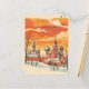 Med det här vykortet visas en serene och varm illustration som representerar Moskvas cityscape med katedralen St. Basil, det historiska byggnad och en snöpark. Det är ett underbart vykort för resenärer som planerar att besöka Moskva eller för dem som reste till Moskva och skickade ett vykort till sin familj eller sina vänner.