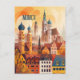 Det här vykortet visar en serene och varm illustration som representerar Münchens skylin. Det är ett underbart och romantiskt vykort för resenärer som planerar att besöka München eller för dem som reste till München och skickade ett vykort till sin familj eller sina vänner.