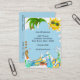 En ljus och gladlynt visitkort för resa- eller semesterortbranschen. Designsärdrag slösar stänk centrerar med gränsen av palmträdet och att le sol- och strandobjekt. Graphics© http://www.delightful-doodles.com/