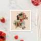 Paket av 50 vita pappra cocktailblöjor med vintage bild av konstnären Joe De Mers som publicerades i en 1948-utgåva av Esquire. I den här bilden är en ung kvinnlig artist sitta på en koffert i tält och fixar hennes hår medan hon tittar i ett kompakt spegel. En siamesisk katt med en röd krage ljuger på golv bredvid henne. Bakom henne finns en gyldad cirkusvagn och en ponny med röd fjäder på huvudet och en röd båge på svan. Se matchande trasa-napkin, plastunderlägg och papper underlägg. Se hela Patriotic 40s Napkin-samlingen i FOOD/BEV | Linens-sektion.