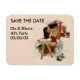 3 tum x 4 tum flex-stil spara-the-date magnet med vintage bild av konstnären Joe De Mers publicerad i en 1948-utgåva av Esquire Magnet och valfri text. I den här bilden är en ung kvinnlig artist sitta på en koffert i tält och fixar hennes hår medan hon tittar i ett kompakt spegel. En siamesisk katt med en röd krage ljuger på golv bredvid henne. Bakom henne finns en gyldad cirkusvagn och en ponny med röd fjäder på huvudet och en röd båge på svan. Se matcha konkotti, beställ påse, förmånstagg, presentpåsar, etikett, kvadratklistermärke och papper förpackning. Se hela Patriotic 40s Magnet-samlingen i SPECIELLA TUUCHES | Avsnittet Party favors.