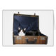 Svart och vit katt i en gammal resväska som vill färdas eller tas med