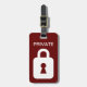Privat resgodsbagagemärke med läderband. Anpassningsbar monogrammade märkre för resväskor och påsar. Anpassa med din egen lustiga text eller namn initialer. Moderna bagageetiketter med adress på baksidan. Maronröd färg och typsnittet kan ändras. Coolans malldesign med enkel typografi och padlock-logotyp. Utskrift på dubblans sida. Unik presentidé för vänner och familj. Lämplig för manar, kvinnor och barn.