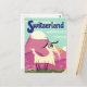 Schweiz Vintage stil reseaffisch av en söt tecknad get på Alpernornas berg.