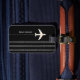 Reseflygplanets eget namn och inledande svart bagagebricka