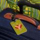 Resa extra bagagemärke. En bagagetagg används för att enkelt identifiera resväskan i fodral som den får borttappad under resan, eftersom den innehåller din kontaktinformation som namn, mobilt nummer och adress, vilket gör att någon kan nå dig om de hittar väskan avskild från dig.