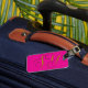 Resa extra bagagemärke. En bagagetagg används för att enkelt identifiera resväskan i fodral som den får borttappad under resan, eftersom den innehåller din kontaktinformation som namn, mobilt nummer och adress, vilket gör att någon kan nå dig om de hittar väskan avskild från dig.