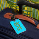 Resa extra bagagemärke. En bagagetagg används för att enkelt identifiera resväskan i fodral som den får borttappad under resan, eftersom den innehåller din kontaktinformation som namn, mobilt nummer och adress, vilket gör att någon kan nå dig om de hittar väskan avskild från dig.