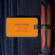 Resa extra bagagemärke. En bagagetagg används för att enkelt identifiera resväskan i fodral som den får borttappad under resan, eftersom den innehåller din kontaktinformation som namn, mobilt nummer och adress, vilket gör att någon kan nå dig om de hittar väskan avskild från dig.