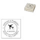 Tema för resor bröllop, party, baby eller möhippa gummi frimärke som ser ut som ett pass- eller visumflyg i frimärke med ett flygplan i mitten om personligens anpassningsbar som kan ändras till att fungera för vilket äventyr som helst, resa eller önsketälta firande. OBS! Klicka PÅ ANPASSA YTTERLIGARE om du vill ändra typsnitt och textplacering.