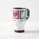 Fredens Polar i Kärlek Bears mugg. Ett fredstecken i grönten, ett rött hjärta och en söt polar är märkt på en blå kvadrat. Underbar gåva till någon som kärlek vackra djur.