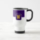Kaffe-resemuggen visas här med ett stil-block färg med ett exempel på brev, anpassa och ändra färger och brev eller köpa som det är. Färg Lila, Vit Anpassa det här objektet eller köp som det är.