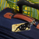 En modern och elegant utformning, med genomträngda flygplan, kartor och namn... ett bra monogram för en snyggt resenär. Få ditt bagage att framstå med en samling resemärken med personlig.