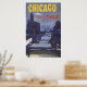 Vintage resor poster för Trans World Airlines-flygningar till Chicago som visar broar på en flod som sträcker sig över natten, omkring 1960.