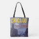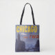 Vintage resor poster för Trans World Airlines-flygningar till Chicago som visar broar på en flod som sträcker sig över natten, omkring 1960.