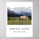 Den här reseaffischen är fullt anpassade, man kan behålla den som med denna vackra schweiziska Alperna, med en flock av bergskor som betar sig fredligt. Du kan också klicka på "anpassa" och redigera både texten och fotot. Har du ett eget foto av de schweiziska Alpernorna som du vill hänga på väggen? Spelar ingen roll du väljer, dina väggar väntar!