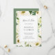 blommigten elegant sparar datumkortet på spanska med handmålad vattenfärg vit ros och grönt som täcker hela framsidan. Dina uppgifter om bröllop finns på ett vitt rektangulärt ram som överlappar blommorna. Baksidan är en matchande skuggning av grönt och kan ändras till valfritt färg. Den här designen är perfekt för ett trädgårdsbröllop på sommaren.