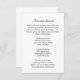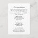 Reservations- och inkvarteringskort för destinationsäsong. Utformning av anpassningsbarna för att lägga till text på tre områden, inklusive information för gäster från bröllop, namn och kontakter på hotell och bröllop webbplats. Svart, utskriven text är lätt att läsa på vit papper. Enkelt, generiskt kort som ska omges av bröllopsinbjudan.
