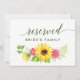 Denna skylt med sommarsolrosor är perfekt för en vår- eller sommarbröllop. Kortet är dubbelsidigt (trycks på båda sidor). Designen har blomstergrönska med ljusgula solrosor och rosa gerbera blommor. Använd dessa kort för att reservera stolar eller bord vid din bröllopsceremoni, mottagning eller någon annan tillställning.