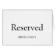 Detta är ett reserverat bord undertecknar kortet. Det är elegantt skrivar calligraphyen för utsmyckad bröllopsfest, chic möhippa, förlovning eller årsdag. Det är den flott placeringen noterar kort med namn av bruden och ansar familjen, VIP-gäster, brudtärnor, marskalkar, den bäst manen, maid of honorEtc.-text, och designen kan skräddarsy för något inbjudankort.
