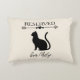 Lägg till en aning stollig och charm till ditt hem. Den här charmerande kudden har en svart katt som en snygg silhuett, som ställs in mot en varm bakgrund med linne-färgad för att anpassa sig med namn i ett eget husdjur i ett typsnitt av eleganten.
