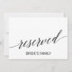 Det här eleganten "reserverat" för svartvita och svarta kalligraftecken är perfekt för ett enkelt bröllop. Kortet är dubbla (skrivs ut på båda sidor). Neutraltens utformning har ett minimalistiskt kort som är dekorerat med romantisk och visuell typografi. Använda korten till att reservera stolar eller bord vid ceremonin i bröllop, mottagningen eller vid vilket evenemang som helst.