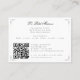 Affärskortet Reparant Simple White Script Classic Reservation med QR-kod. Vintage inspirerade till elegantens utformning med skript som typsnitt och vintage snurrar och blomstrar. Denna utformning är förenad med ett enkelt och känsligt minimalistiskt stil. Samlingen erbjuder annat tryckt material som du kan behöva för din restaurang.
