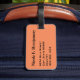 Bagagetagg med bild av ett glas vin, namn och adress på persikobakgrunden. Anpassa med namn och adress-information med hjälp av de enkla mallarna. Teckensnitt färg, stil, storlekt teckensnitt och persikobakgrund färg är anpassade.