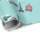 Ett presentbyte med reselaterat inslag: ett flygplan, ett bagage, en fotokamera och Eifel torn.