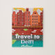 Resa till Delft Holland-reseaffisch. Nederländska helgdag poster utskrift. Delft Canal Holland-reseaffisch.