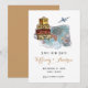 Bosättningsbröllop i Karta Spara datumet med vintage karta och resväskor, pass och flygplan för ditt resmål bröllop.